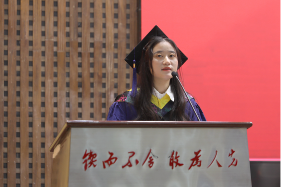 Hu Jintian, representatives of on-campus postgraduates, delivered a speech