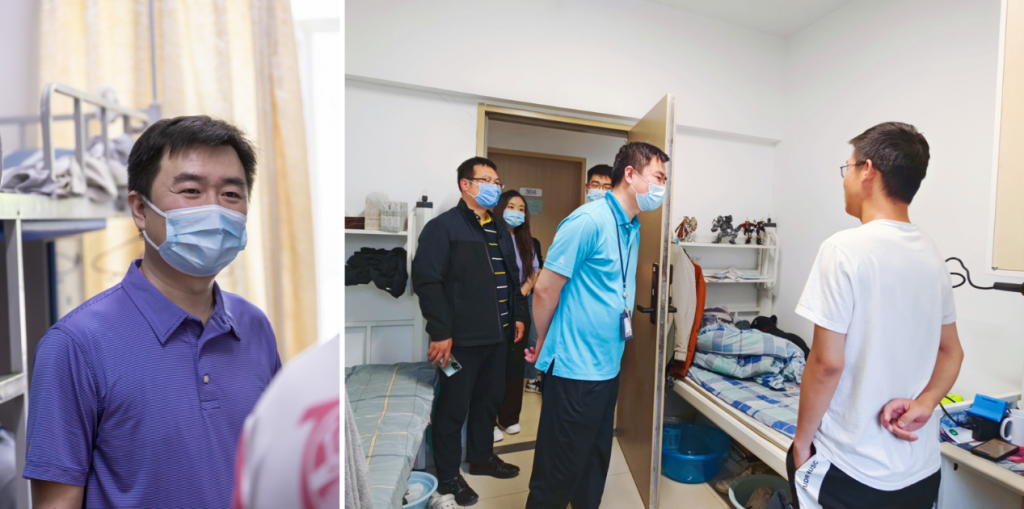 德赢AC米兰中国官方网站院长刘明杰一行到实验7号楼研究生工位、沙河东区和西区宿舍看望本研学生,与同学们详细沟通了学习和科研进展,了解学生需求,鼓励同学们合理安排好科研、上课、学习及生活,积极锻炼身体,以实际行动守护美丽校园。