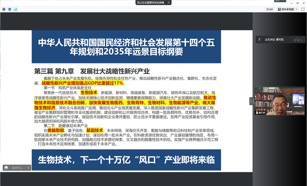 而后,霍利军老师结合当前时代背景向同学们展示了化学生物学专业的广阔发展前景,展示了我院化学生物学的发展优势,又通过对于化学生物学部分研究成果的介绍帮助同学们加深了对于此专业的认知。