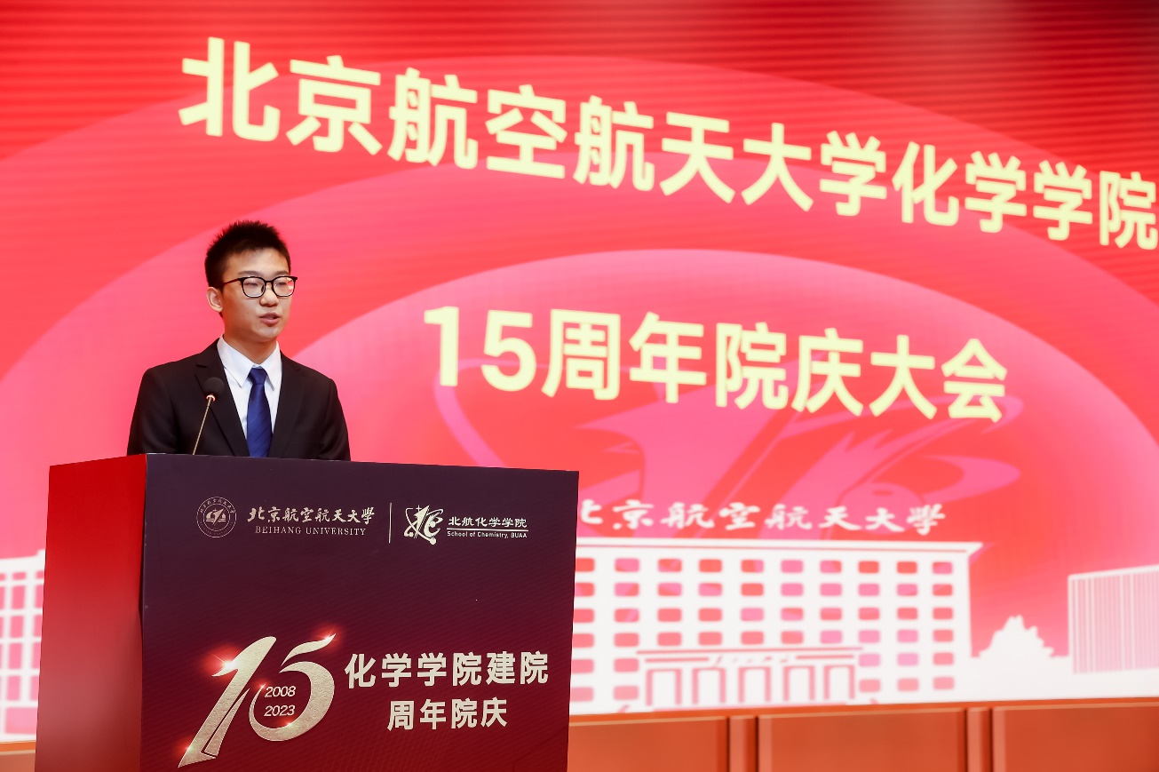 校友代表、南开大学材料科学与工程学院教师、2013级博士曹墨源教授,教师代表、北京市高等学校教学名师、北航立德树人优秀奖获得者朱英教授,优秀学生代表、德赢AC米兰中国官方网站2020级本科生、北航“冯如杯”竞赛一等奖、首都“挑战杯”一等奖获得者郭士豪同学分别发言。