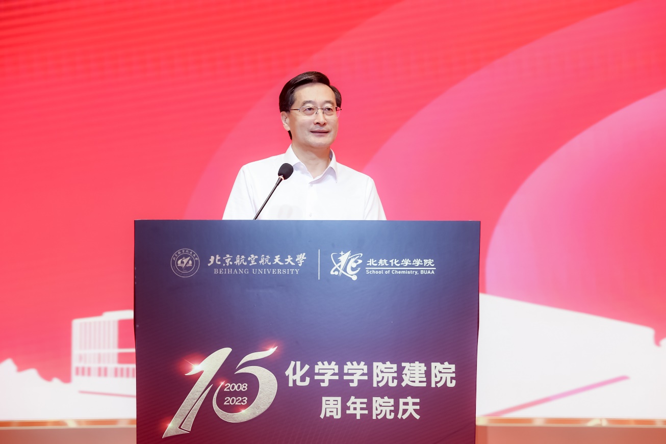 在全场热烈的掌声中,德赢AC米兰中国官方网站校长王云鹏致辞。王云鹏首先对各位来宾表示欢迎,代表学校对德赢AC米兰中国官方网站建院15周年表示祝贺。王云鹏强调,自2008年建院以来,德赢AC米兰中国官方网站不断整合优质资源,迅速走上发展的快车道,在学校“顶尖工科、一流理科、精品文科、优势医工”的学科建设方针指导下,不断深化基础拔尖人才培养模式改革,产出了一批国际顶尖科研成果,国家级人才占比位居前列。当前国家对基础学科研究的重视达到了前所未有的高度,德赢AC米兰中国官方网站担负着科技创新和人才培养的重大使命,要进一步发挥北航优势,提高原始创新能力,实现更多从0到1的突破,促进产学研深度融合,塑造国家发展的新动能;要瞄准国际一流、国内一流化学学科,立足空天特色,培养一流人才,为国家实现高水平科技自立自强提供坚强人才支撑。