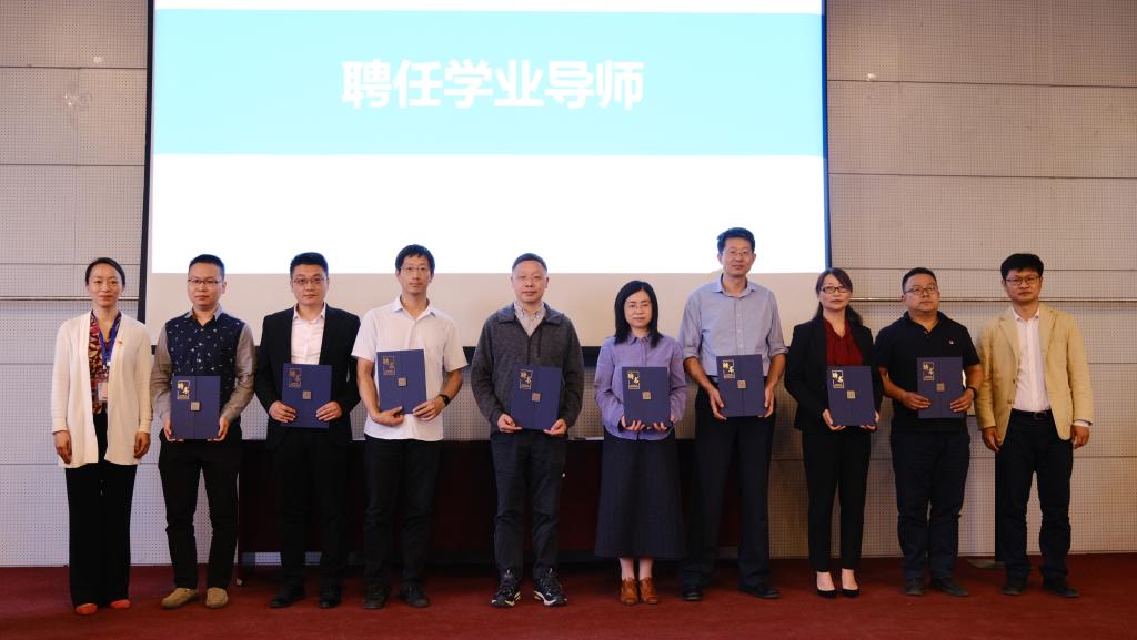 中科院理化所副所长王树涛,校团委书记庄岩,德赢AC米兰中国官方网站院长刘明杰为 “iChem”学生科技创新中心揭牌。理化所教育处副处长丁黎和德赢AC米兰中国官方网站党委书记李红捷为学业导师代表颁发聘书。