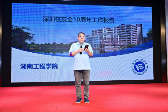 向前代表学校对深圳校友会长期以来为母校发展作出的贡献表示衷心感谢,向深圳校友会十周年庆典表示热烈祝贺,并向与会校友介绍了近期学校发展情况。她表示,湖工校训“锲而不舍 敢为人先”影响了一代又一代的湖工人,也将湖工校友紧紧地凝聚在一起。这十年间涌现出了一批批勇于担当、乐于奉献的典型校友,他们的事迹熠熠生辉,他们用实际行动为母校的高质量发展作出了重要贡献。向前还向校友们解读了“校友回湘”的相关政策,欢迎各位校友回湖南这片红色沃土投资创业,实现青春的梦想。