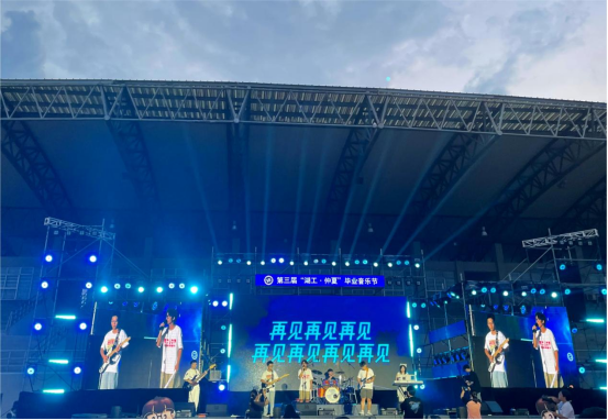 音乐节以毕业之歌、母校之爱、同窗之情为序,以乐队表演、舞蹈、朗诵为主要形式,融合流行、摇滚、朋克等多元音乐风格,用歌声、舞蹈、语言交织串联起真挚深厚的母校情、师生谊、同学缘。校艺术团、街舞协会、校园十佳歌手,青年摩登乐队、日暮颂歌乐队、水星日乐队等5支乐队为即将离校的毕业生们呈现了一场精彩绝伦的视听盛宴。台上灯光映照,台下荧光闪烁,活动现场氛围热烈,掌声与喝彩不断,精彩纷呈的演出将音乐节一次次推向高潮,不少观众被深深感染,流下了动情的泪水。