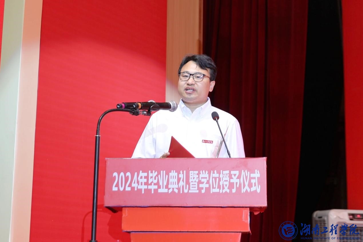 毕业典礼上,向前宣读《湖南省教育厅关于表彰湖南省普通高等学校2024届优秀毕业生的通报》。全体校领导为获奖毕业生代表颁奖。