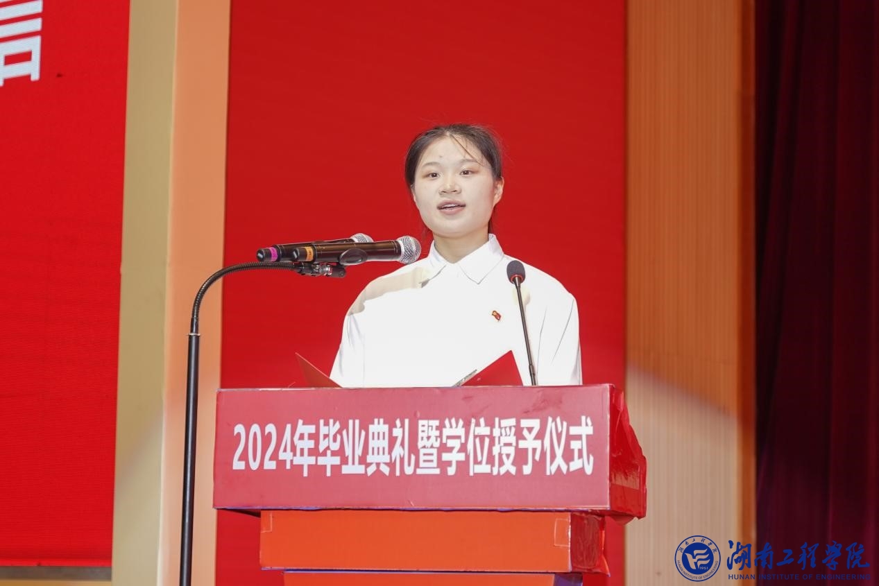 “祝你们摘自己的月亮,成为独行的太阳,永远走在开满鲜花的道路上。也希望我们湖工的每一位学子永怀赤子之心,在各自的人生征途中,都能获得成长与收获,绽放属于自己的璀璨光芒!”在校生代表管理学院工商管理2021级伍心悦为毕业生献上美好的祝福。