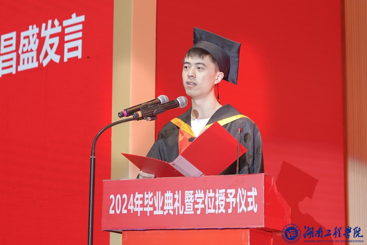 材料与化工学院唐昌盛作为毕业生代表分享感悟:在湖工的四年里,我们有挥斥方遒的科研达人,有叱咤风云的学神学霸,有自信满满的教学新星,还有为了自己的梦想依然在努力奋斗的你我他,我们都是2020级这幅绚丽画卷不可或缺的一部分。希望2024届毕业生可以带着辅导员、老师们的嘱托,带着同学们的祝福,带着父母的期盼,书写更加精彩的人生新篇章!