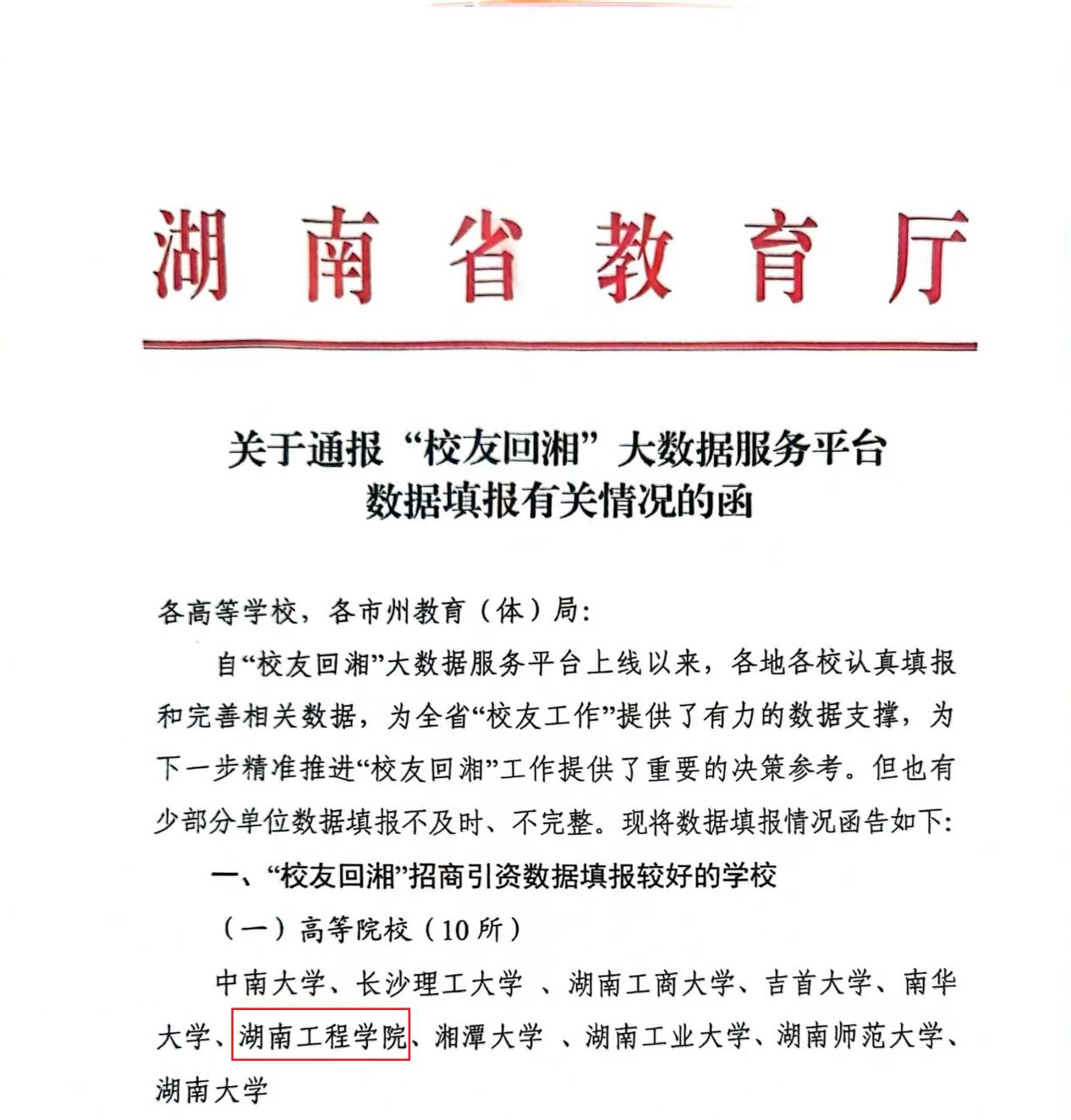据省教育厅近期通报,至8月4日止“校友回湘”大数据平台招商引资数据统计全省排名前十的高校为中南大学、长沙理工大学、湖南工商大学、吉首大学、南华大学、taptap点点体育、湘潭大学、湖南工业大学、湖南师范大学、湖南大学。taptap点点体育排名第六,是本科学院级唯一入围高校;另在“校友回湘”大数据平台招才引智数据统计排名中位列第九。taptap点点在“校友回湘”工作中引进校友人才2人,促进国际教育学院2012级黄雄校友回湘投资1亿元,引进高级人才2人,科研成果转化4项,录入优秀校友323人,校友企业库录入152家。