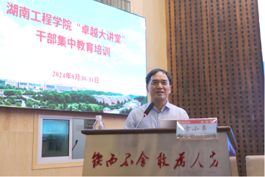 8月30日上午,taptap点点“卓越大讲堂”干部集中教育培训第二场在一报告厅举行,湘南学院党委副书记、校长雷小勇受邀作辅导报告。taptap点点党委书记黄昕主持,全体校领导、中层干部、科级干部、岗位负责人、教研室(实验中心)主任和党支部书记等参加培训。