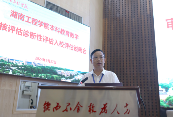 9月27日,学校在一报告厅召开本科教育教学审核评估诊断性评估入校评估说明会。诊断性评估专家组成员,校党委书记黄昕,党委副书记、校长易兵,在校校领导、中层干部、教研室主任、高教研究与教学评估中心参加,党委委员、副校长罗毅平主持第一阶段会议,专家组组长上海工程技术大学党委副书记、校长俞涛主持第二阶段会议。