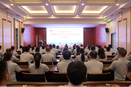 黄昕作结班仪式讲话。他充分肯定了此次培训工作,对坚持完成培训任务的参训学员表示祝贺。他对党支部书记提出四点要求:一是要不忘初心,精通业务。要坚守为教师、学生、学校做好服务的初心,认真学习《党支部书记工作手册》,做党建工作的行家里手,精益求精,一丝不苟,充分发扬“锲而不舍,敢为人先”的校训精神;二是要严于律己,模范带头。要在教学、科研、师德师风等方面充分发挥先锋模范作用,做学生为学、为事、为人的“大先生”,以更高的标准、更严的要求,加强自身修养;三是要改革创新,敢为人先。要打破“舒适区”、突破“黑障区”、勇闯“无人区”,敢于在工作内容、方式、方法、载体上改革创新,统揽改革发展全局,成为学校“135工程”的拥护者、参与者、推进者;四是要踔厉前行,争创一流。支部党建与业务工作要同谋划、同部署、同推进、同考核,同向发力,要充分发挥支部战斗堡垒作用和党员先锋模范作用,努力在各项工作中取得一流业绩、创造一流成果,共同书写湖工最为动人、激情澎湃的“大文章”。
