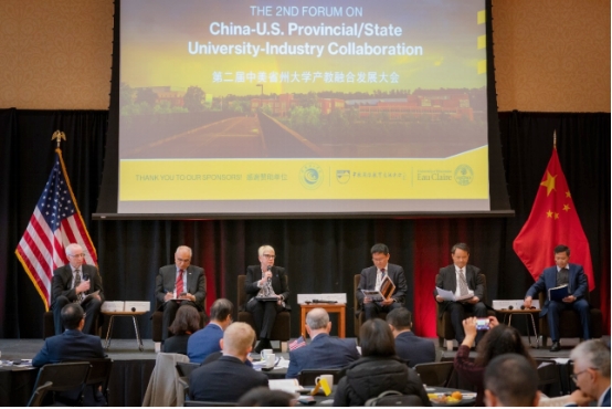 本次大会以“教育创新,探索中美省州大学产教融合新路径”为主题。研讨环节由易兵和威斯康星大学欧克莱尔分校副校长Mike Carney共同主持。研讨嘉宾围绕校企合作如何促进大学服务地方使命、创新大学发展路径,大学、产业和区域经济三者如何协同发展以支持大学为地方经济的未来发展培养人才,以及中美省州大学如何与企业携手合作、共同应对当今世界面临的气候变化、医疗卫生等诸多挑战等问题,展开了精彩分享和讨论。
