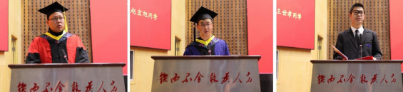硕士研究生导师代表程浩南副教授祝贺毕业生,他鼓励大家坚持“梦想、行动、感恩”的信条,一定能创造出属于自己的精彩人生。2022级能源动力专业赵宏旭作为毕业研究生代表发言,他表示,课题组情谊深厚,导师悉心指导令人难忘。他将不负时代,勇担使命,奋力前行。2024级能源动力专业王世孝作为在校生代表发言,他表示,将以师兄师姐为榜样,传承母校精神,铭记校训,努力实现自我价值。
