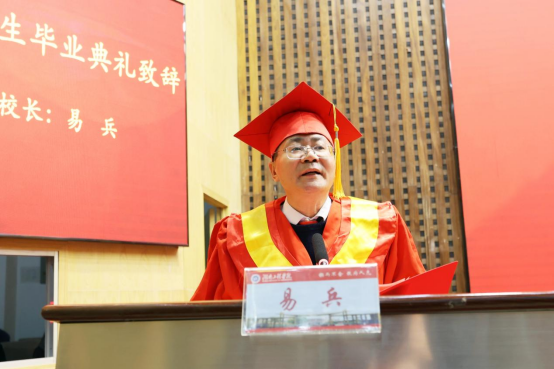 易兵向毕业研究生们送上热烈的祝贺和美好的祝福,并作题为《挺膺担当启新程,研途筑梦续华章》的讲话。他对毕业生寄予三点期望:一是不忘初心、牢记使命,要将个人理想融入民族复兴,践行青春誓言;二是深耕职业、笃行创新,在专业领域扎实钻研,兼具跨领域融合能力,突破传统思维,学习新知,引领行业发展;三是自信自立、宽厚包容,自信迎接挑战,凭借对成功的执着追求,在人生征途破浪前行,肩负时代重任,助力国家建设。