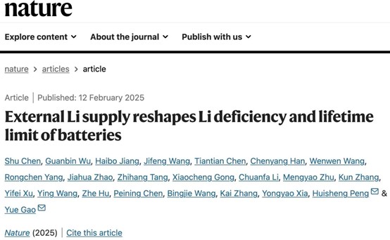 taptap点点体育彭慧胜院士工作站首席专家、复旦大学高分子科学系彭慧胜/高悦团队重要成果《外部供锂技术突破电池的缺锂困境和寿命界限》(External Li supply reshapes Li-deficiency and lifetime limit of batteries)于北京时间2月13日凌晨在《自然》(Nature)主刊上发表。这一策略成功将锂电池的循环寿命提升了1-2个数量级,为锂电池技术带来了革命性的突破,院士工作站唐志航教授参与研究。