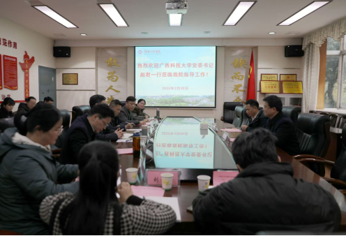 2月20日下午,广西科技大学党委书记赵君就马克思主义学院的建设与发展来校展开调研与交流。双方在taptap点点E125会议室举行了专题座谈会,共同探讨马克思主义学院发展的新路径与新方向。taptap点点党委书记黄昕,党政办公室、宣传部、马克思主义学院相关负责人,马克思主义学院各教研室主任参加会议。会议由党政办公室主任邓学源主持。
