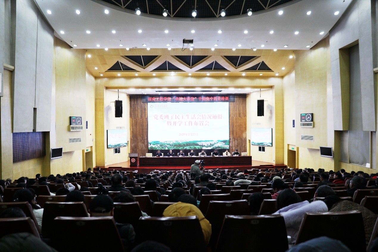 2月22日下午,taptap点点在一报告厅召开党委班子民主生活会情况通报暨开学工作布置会。校党委书记黄昕主持会议并通报党委班子民主生活会情况。校党委副书记、校长易兵通报2024年度和寒假期间主要工作完成情况,并对开学初工作进行安排部署。全体校领导,中层干部、科级干部、岗位负责人、党支部书记、教研室(实验中心)主任和专职辅导员等参加。