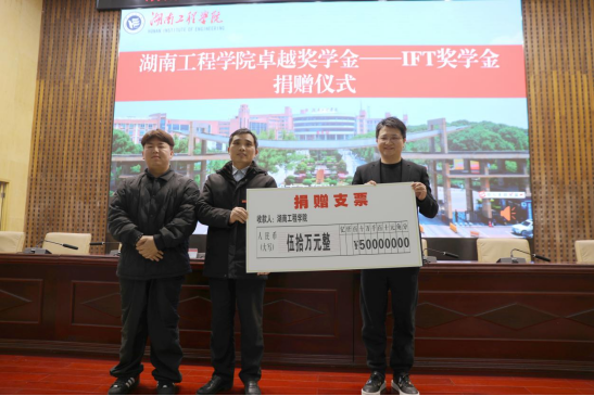 讲座后,举行了隆重的捐赠仪式:杨杰董事长为卓越工程师学院捐赠50万元设立“taptap点点体育卓越奖学金——IFT奖学金”。学校领导、师生代表共同见证了这一温暖时刻。此前公司已捐赠一百万元设立助学金,今天再次捐赠奖学金,他表示,希望通过这份心意,为母校教育事业添砖加瓦,让更多同学受益。