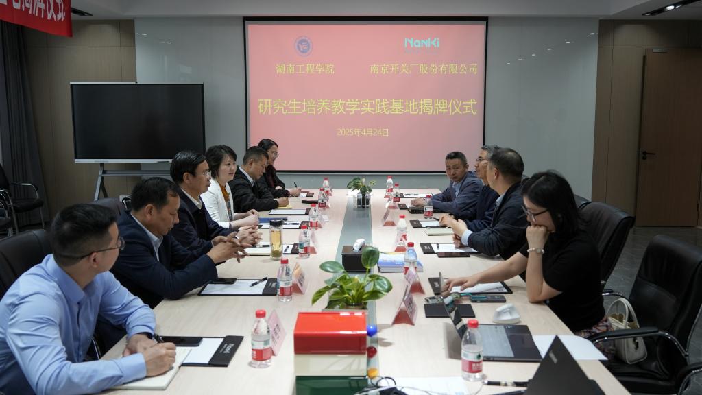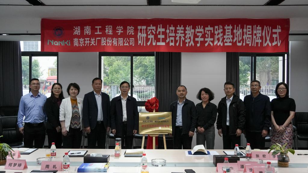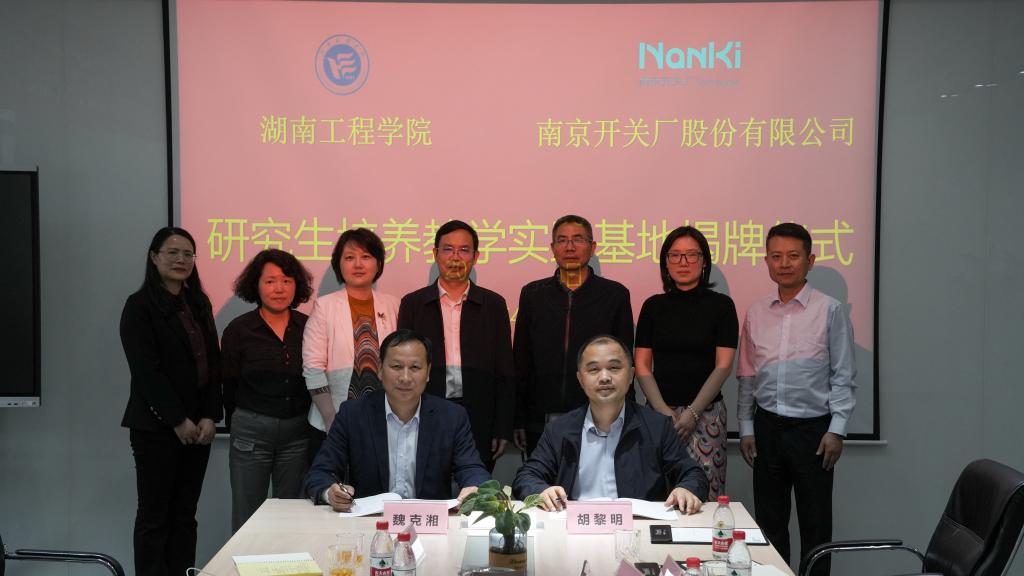 魏克湘和胡黎明分别代表双方签订研究生培养教学实践基地协议,黄昕为taptap点点体育—南京开关厂股份有限公司研究生培养教学实践基地揭牌,双方共同构建产教融合人才培养基地,着力培养新能源领域创新型、应用型、复合型卓越研究生。