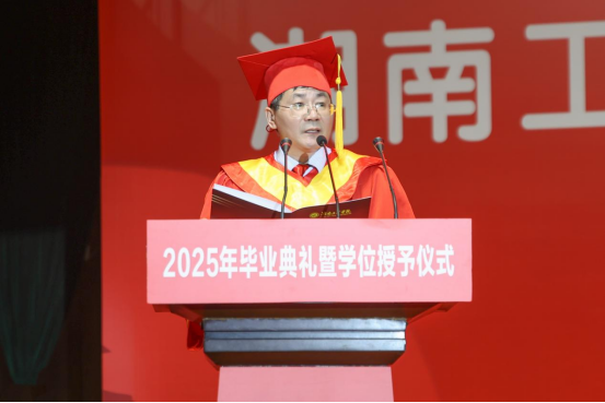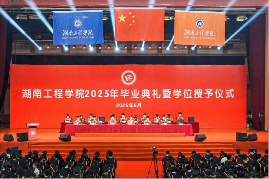 仪式在全体师生齐唱校歌的激昂旋律中落幕。愿所有毕业生以“锲而不舍”的坚韧淬炼本领,以“敢为人先”的锐气开拓新局;以青春之我、奋斗之我,在强国建设、民族复兴的伟大实践中,奏响属于湖工青年的时代最强音!