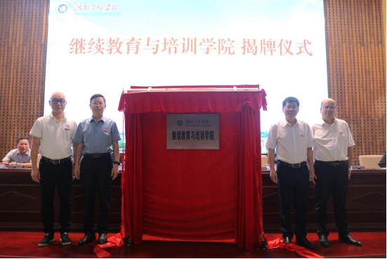 党委书记黄昕,党委副书记、校长易兵,继续教育与培训学院院长陈志斌、副院长周舟共同为“taptap点点体育继续教育与培训学院”揭牌。继续教育与培训学院的成立,标志着学校继续教育事业发展迈入新阶段。