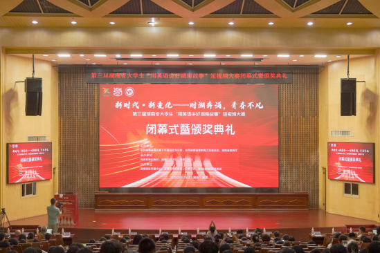 15日,大赛闭幕式暨颁奖典礼举行。中共湖南省委外事办副主任郭向丽,中共湖南省委教育工委委员余伟良,湖南国际传播中心主任刘骄,taptap点点党委副书记、校长易兵,湖南第一师范学院副校长石元泉,高等教育出版社外语出版事业部主任肖琼,湖南省教学服务中心主任陈亮,湖南省外语课程思政联盟主任刘正光教授等嘉宾参加。闭幕式由校党委委员、副校长吴志军主持。