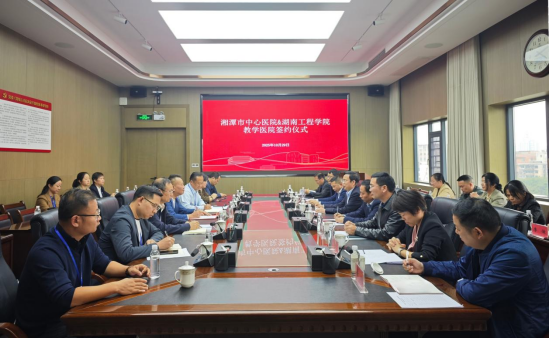 黄昕表示,与湘潭市中心医院这样一家实力雄厚的三级甲等综合医院建立战略合作关系,是学校深化产教融合、服务地方经济社会发展的重要举措。他期望双方以教学医院共建为起点,未来在科技攻关、成果转化和人才共享等方面开展更深层次、更宽领域的合作,共同打造校院协同发展的典范,为医工融合创新积累宝贵经验。