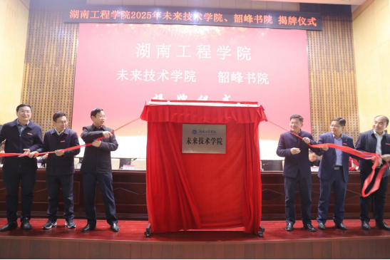 党委书记黄昕,党委副书记、校长易兵,党委委员、副校长罗毅平,党委委员、副校长张小刚,学术副校长丁选明和未来技术学院、韶峰书院负责人共同揭牌,标志未来技术学院与韶峰书院从蓝图规划到正式运行。