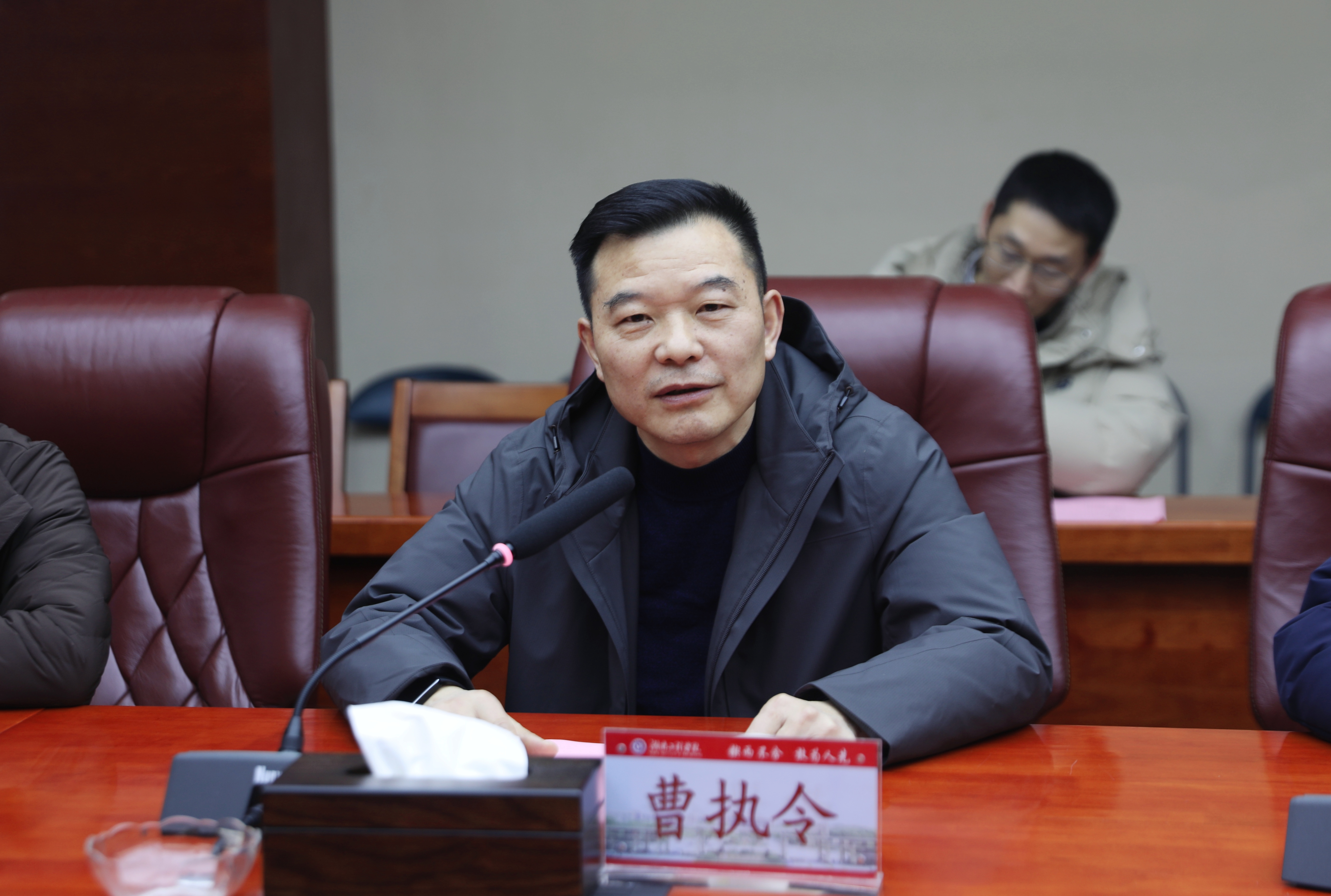 曹执令代表学校对陈赤平一行的到来表示热烈欢迎。他回顾了两校之间的历史渊源与合作基础,指出此次交流是推动双方深度合作、共同发展的重要契机。他表示,学校将全力支持两校在教学成果培育、专业建设、人才培养等方面的合作,期待通过优势互补、资源共享,共同提升办学水平与育人质量。