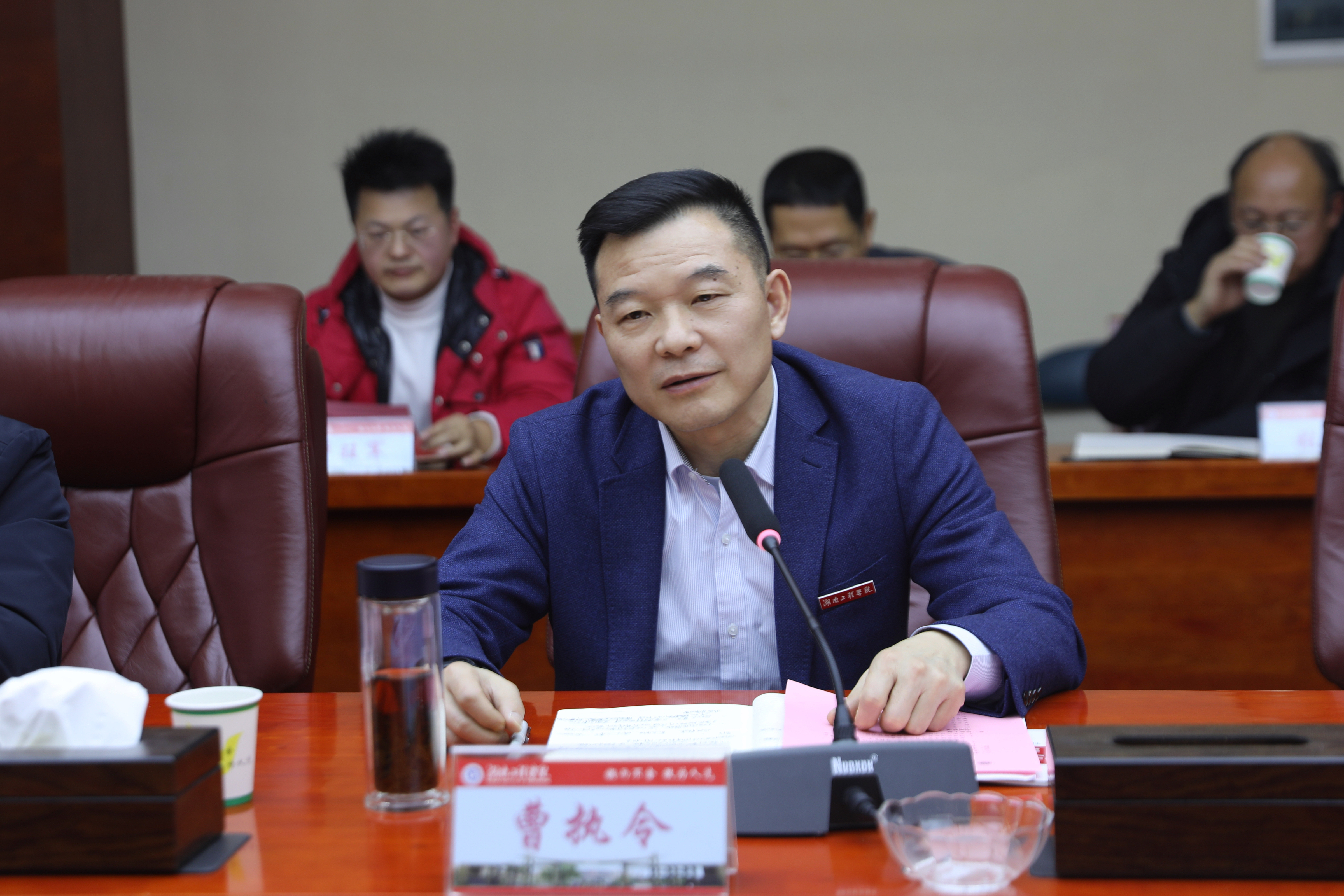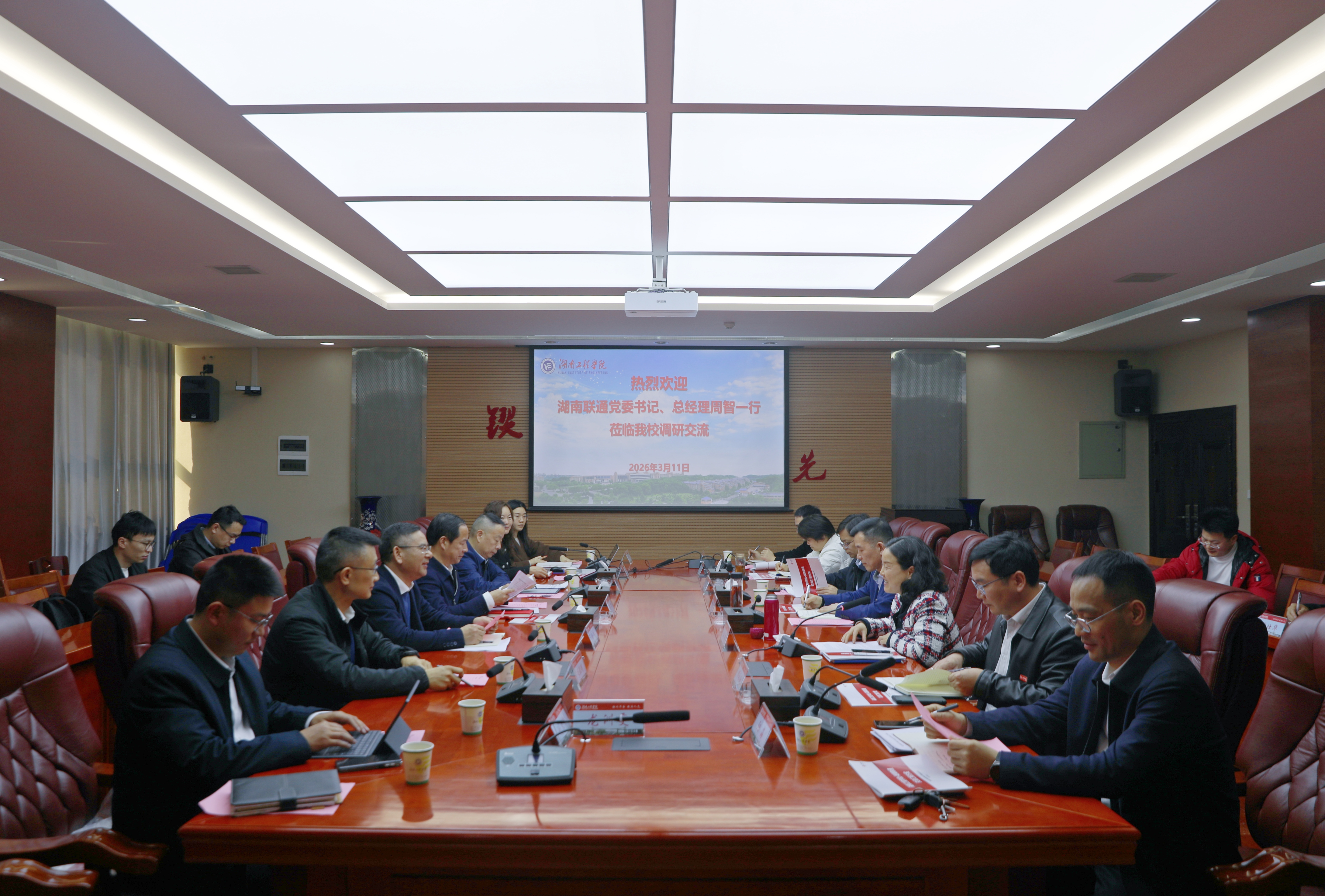 曹执令对周智一行的到来表示欢迎。他指出,作为一所应用型本科高校,学校始终坚持开放办学,积极探索产教融合的有效路径,与湖南联通合作空间广阔。他希望双方以此次交流为契机,进一步加强沟通对接,增进相互了解,在现有合作基础上深入探讨具体项目的可行性和合作路径。他表示,学校将与湖南联通保持密切沟通,共同推动合作意向逐步转化为实际项目,确保合作取得实实在在的进展。