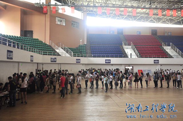 今年的迎新报到点分别设在体育馆和南校区实验楼。初秋的清晨有点微凉,迎着第一缕阳光,志愿者们早早忙碌起来,他们守候在工作站旁,随时为新生及家长提供周到细致的服务。放眼望去,报到点彩旗飘扬、人头攒动,鲜艳的迎新帐篷、热情似火的横幅,各式宣传展板、拱门汽球,把迎新报到点装扮得分外妖娆,湖工人用特有的热情喜迎五千新生。