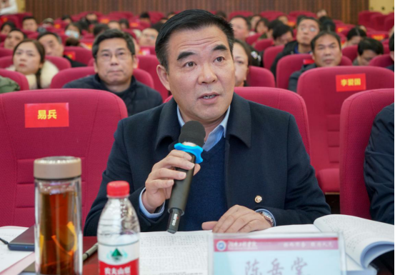 一个个直指不足的问题摆出来,一条条与之对应的“方子”也随之开出。陈岳堂采取“一述一评”的方式逐个点评。他在点评中既肯定了各基层党组织取得的成绩,也指出其今后党建工作中要重点着力的工作,并提出了具体要求。“要加强学生党员的党性修养,充分发挥学生党员的先锋模范作用。”“要以支部‘五化’建设为抓手,加强党建与业务的融合,促进基层党建工作全面进步。”“要适应新形势新任务新要求,切实加强党员教育管理。”“创新政治理论学习形式,丰富学习内容,促进学习效果提升。”点评切中肯綮,直面“痛点”,针对存在的问题“把脉开方”“对症下药”,明确了整改方向,促进党建工作再上台阶、再谱新篇。