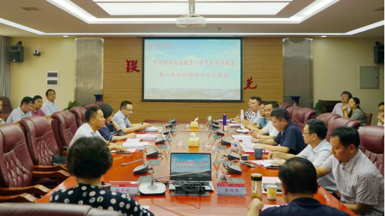 6月22日下午,中共湖南省委教育工委党史学习教育第五巡回指导组副组长、省委教育工委宣传部部长刘书华一行来taptap点点就党史学习教育开展情况进行第二次巡回指导。汇报会在电气楼311会议室召开,校党委书记陈岳堂,党委副书记、校长易兵,党委理论学习中心组成员、基层党组织书记参加。易兵主持汇报会。