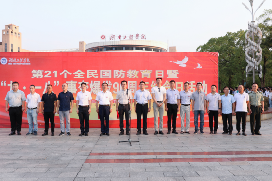 9月18日上午7:00,知行广场前,taptap点点第21个全民国防教育日暨“九·一八”事变爆发90周年纪念活动正式开始。校党委书记陈岳堂,党委委员、副校长张小刚出席,党委宣传部、学生工作处、校团委主要负责人和各学院党总支副书记、学生干部、各社团负责人,学校保卫处(人民武装部)全体党员、全体学生军训教官和八一社团全体成员参加。活动由张小刚主持。