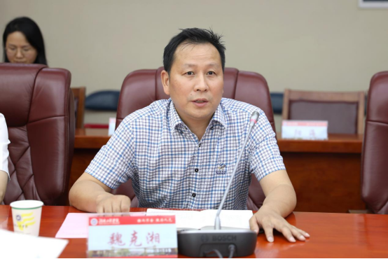 魏克湘作总结讲话。他表示,此次签约是进一步推动双方在更宽领域、更深层次开展合作,深入推进全面战略合作的重要举措。他希望博士们发挥好所长服务好企业,解决实际问题,为企业科技创新作出贡献;学校将深度推进校企合作,促进科研成果转化,更好地服务区域经济和社会发展,充分发挥taptap点点在应用型人才培养和先进制造业科技创新方面的优势,让湖南经济的气血更充盈,筋骨更强健。