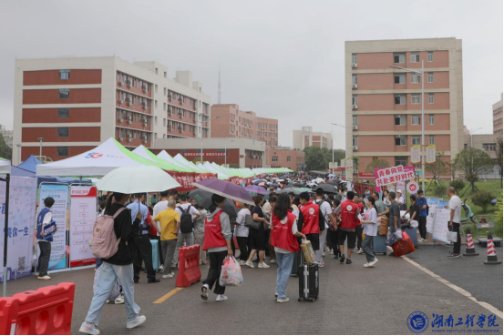 “接过行李,我们就是一家人!”学校在高铁站、火车站、汽车站等场所设置了迎新点、家长休息区,组织工作人员和志愿者为新生和家长提供热情周到的服务,并安排了接驳车辆将他们分批送往各校区报到。