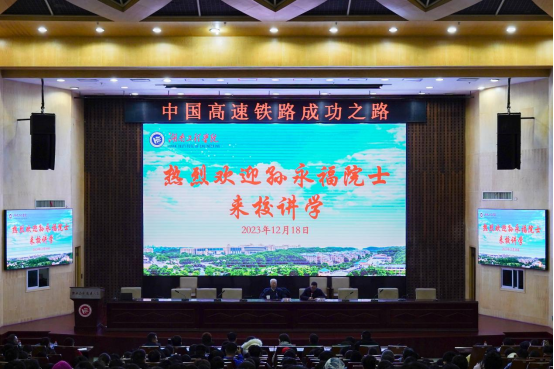 改革开放以来,中国铁路发生了历史性巨变,中国高铁作为国家战略性新兴产业,已经成为一张亮丽的中国名片。作为这段历史的亲历者,孙永福详细讲述了中国高速铁路的发展。他回顾了我国高速铁路发展历史,总结了典型工程实践,指出中国高速铁路的发展经历了自主探索研究、重大技术突破、全面自主创新等阶段。孙永福表示,如今,我国高速铁路网络发达、技术先进、体系完整、安全可靠、便捷高效,不仅为我国社会经济的快速发展提供助力,也将在促进世界经济发展中发挥更加重要的作用。在展望高速铁路未来发展时,孙永福认为,绿色低碳、智能化是高速铁路的发展方向,并向师生们介绍了当前高速磁浮铁路、超高速铁路等相关技术的研究进展。