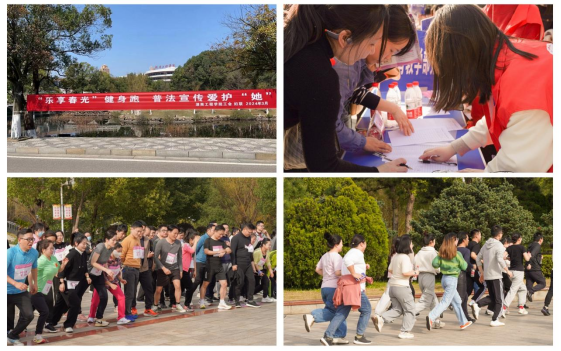 为贯彻省总工会、省教育工会《关于开展2024年湖南省女职工普法宣传活动的通知》精神,不断提高taptap点点教职工学法知法守法用法的意识和健康意识,3月12日,taptap点点结合实际开展了以“‘乐享春光’健身跑 普法宣传爱护‘她’”为主题的纪念第114个“三八”国际劳动妇女节环校健身跑暨普法宣传活动。党委副书记、校长易兵,党委副书记向前,党委委员、副校长张小刚出席。全校19个分工会和直属工会小组代表以及学生志愿者700余人参加。