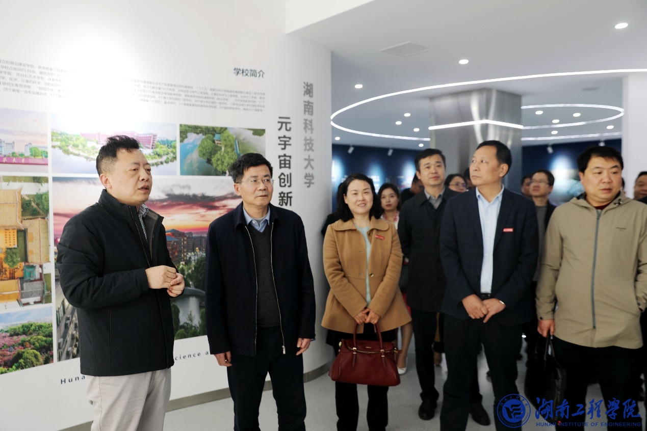 3月25日下午,由校党委副书记、校长易兵带队,校党委副书记向前,校党委委员、副校长张小刚、魏克湘,党委理论学习中心组成员、相关职能部门和教学单位负责人走进湖南科技大学元宇宙创新研究院开展现场学习。湖南科技大学党委委员、副校长谢慧接待考察组一行,双方就创新研究院的建设进行深入探讨交流。