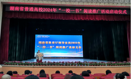 4月26日,湖南省普通高校2024年“一校一书——经典、精读、经世”阅读推广活动举办启动仪式。活动由湖南省教育厅、湖南省高等学校图书情报工作委员会主办,张家界学院、吉首大学承办。