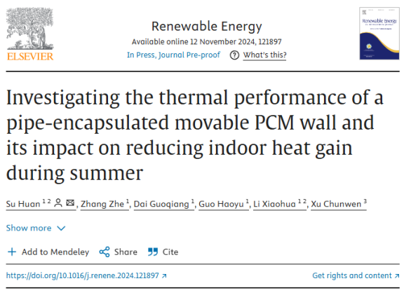 近日,建筑工程学院硕士研究生张哲在能源领域国际知名期刊《Renewable Energy》发表学术论文“Investigating the thermal performance of a pipe-encapsulated movable PCM wall and its impact on reducing indoor heat gain during summer”。该论文第一完成单位为taptap点点体育建筑工程学院,由taptap点点研究生导师苏欢、李小华,研究生张哲、代国强、郭浩宇,联合中国石油大学教授徐春雯共同完成。