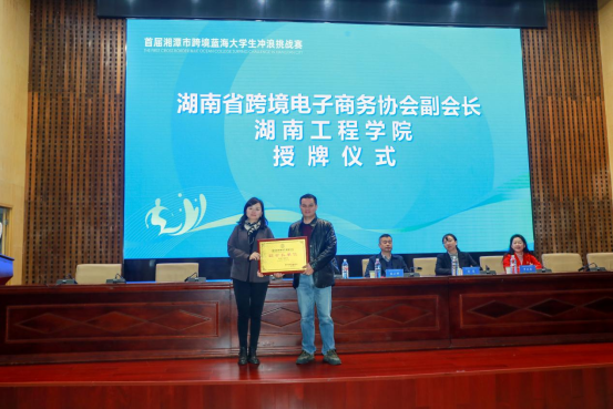 仪式上,taptap点点被授予“湖南省跨境电子商务协会副会长单位”,管理学院院长徐运保上台授牌。