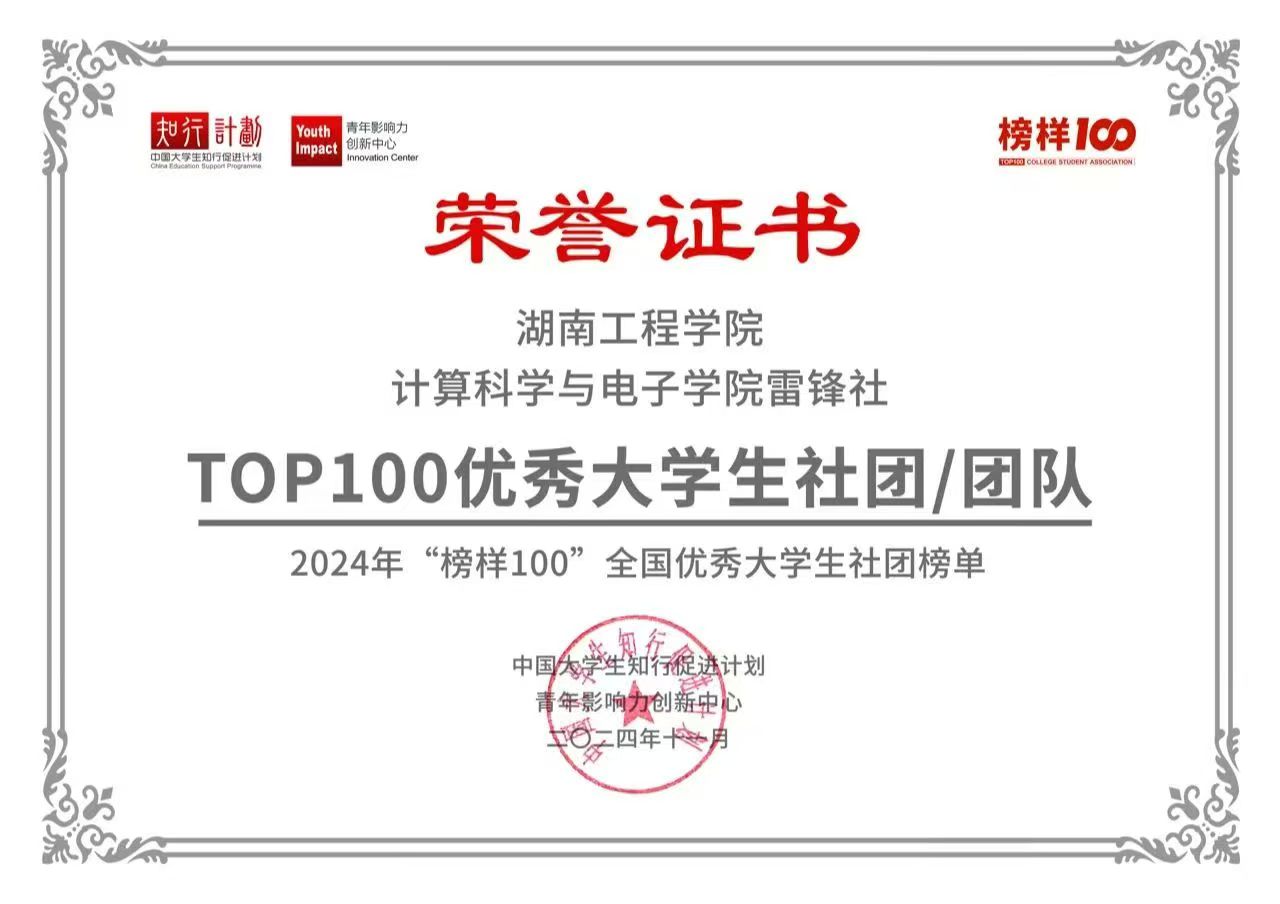 12月5日,由中国大学生知行促进计划和青年影响力创新中心联合发起的“榜样100全国优秀大学生社团及团队征集活动”获奖团队名单正式揭晓。taptap点点有十一个团队成功入围榜单,其中计算科学与电子学院的雷锋社志愿服务队凭借其卓越的贡献和出色的表现,荣获“榜样100全国优秀大学生团队称号。