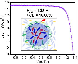 此外,钙钛矿前驱体溶液的基础化学研究对于精确调控钙钛矿薄膜晶体的形貌和尺寸至关重要。基于此,团队通过在CsPbI2Br钙钛矿前驱体溶液中引入少量4,4'-二羟基联苯来进行胶体尺寸的调控,从而制备出均匀且无针孔的无机钙钛矿薄膜。得益于4,4'-二羟基联苯与CsPbI2Br之间的氢键作用,钙钛矿薄膜实现了有序的晶体生长,从而形成具有较大的晶体尺寸以及载流子缺陷显著减少的吸光活性层。最终,基于无机CsPbI2Br太阳能电池的光电转换效率高达16.86%,同时具有1.38 V的高开路电压。此外,与对照组相比,未封装的器件在环境中展现出更为优异的热稳定性和抗紫外特性。研究成果以“Flattening of the Cratered Inorganic Perovskite Film via Precursor Engineering for CsPbI2Br Solar Cells with 16.86% Efficiency”为题在国际知名期刊《ACS Sustainable Chemistry & Engineering》(中科院一区Top,IF=7.1)发表。taptap点点材料与化工学院胡金龙博士为论文第一作者。