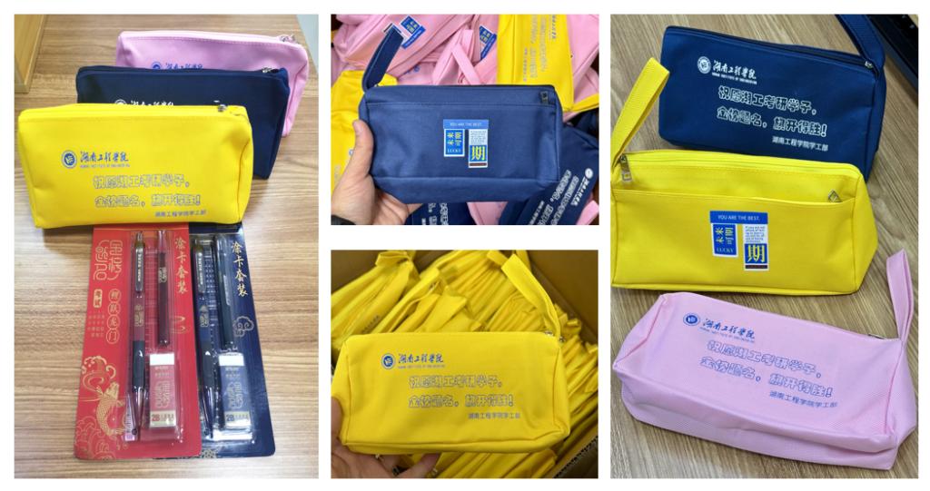 为缓解考研学生的考前压力,增强他们的信心与效能感。学校为每位考研学子精心准备了一份寓意深远的“考研加油包”。这份“金榜题名”考试文具套装:橡皮擦、直尺和考试专用笔,每一件都经过精心挑选,确保学子们在考场上能够得心应手,发挥最佳水平。专门定制的文具袋上印着学校logo和祝福语,时刻提醒考研学子,学校是坚强后盾,勇往无前。