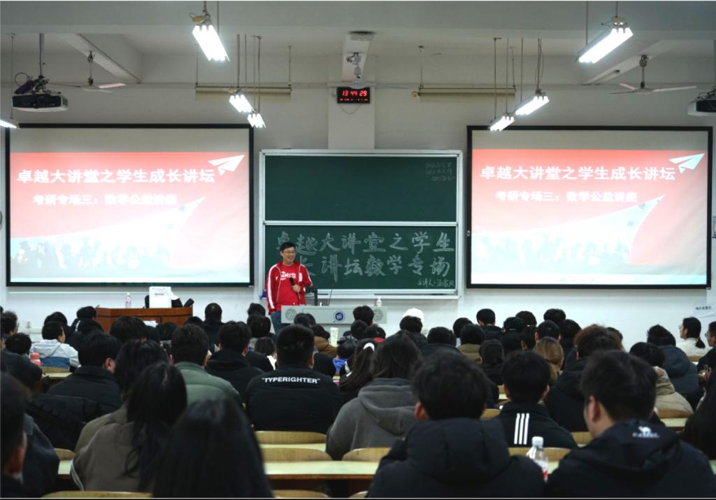 3月29日下午,第三场备受期待的考研数学公益讲座在D101精彩上演。讲座中,主讲老师汤家凤凭借深厚的专业功底,通过一道道经典例题的详细解析,将复杂的数学知识抽丝剥茧般呈现给学生。他巧妙运用“你这个年龄段,怎么睡得着觉?”等标志性金句,瞬间点燃全场气氛,让学生们在轻松愉悦的氛围中加深对知识的理解。同时,结合自身多年教学心得,汤老师着重强调了构建数学知识体系的重要性,以及解题技巧的系统性训练方法。学生们全神贯注,时而低头飞速记录笔记,时而因汤老师的幽默表达发出阵阵笑声,现场学习热情高涨。