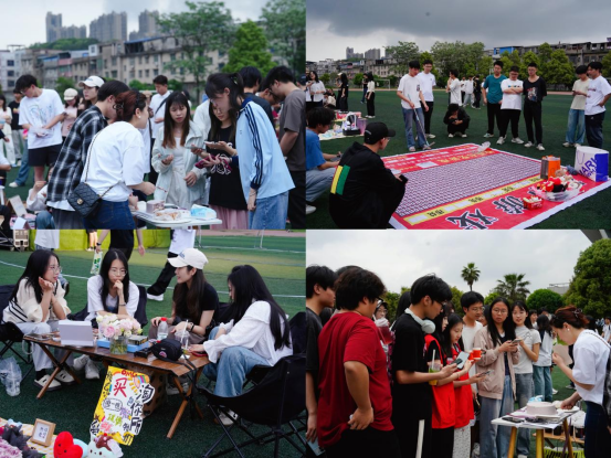毗邻音乐节舞台,23个精心布置的跳蚤市场摊位整齐排列。统一配备的“五彩湖工”主题桌布,搭配折叠桌椅,营造出温馨而富有创意的交易氛围。同学们将闲置书籍、文具、手工艺品等物品进行改造与陈列,让旧物焕发新生,在流转中实现资源循环利用。