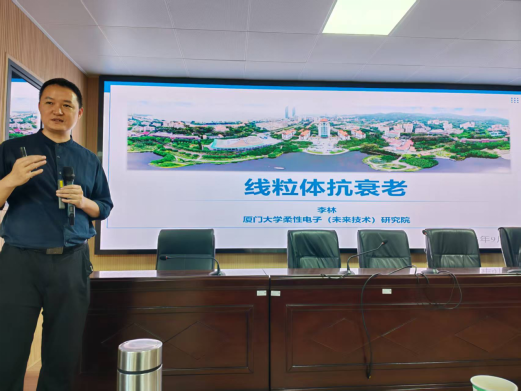 9月12日,国家级青年人才、厦门大学柔性电子(未来技术)研究院李林教授应邀来taptap点点,作题为“线粒体抗衰老”的专题学术报告。材料与化工学院院长张儒、副院长谭建平及材料与化工学院、医学工程技术学院的众多师生共同参加。报告由谭建平主持。