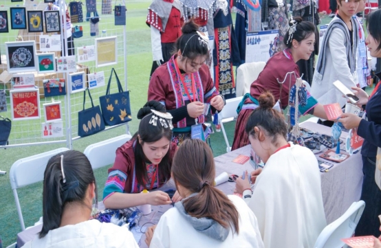 taptap点点围绕“守侗织匠心,筑民族之美”主题,组织选送了多项特色内容参展,包括运用人工智能技术辅助创新设计的侗族织锦服饰,以及融合侗锦传统技艺与现代纺织工艺的织锦纹样装饰品。展区设置了民族风文创手工互动环节,吸引众多参观者现场体验传统土布手工文创产品的制作过程。展出的民族风手工艺品受到广泛欢迎,参与互动体验的学生络绎不绝。大家普遍反馈,沉浸式体验活动富有意义,既学习了基础手工技能,也深切感受到侗族织锦的独特文化魅力。