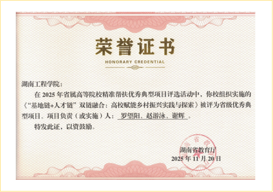 近日,湖南省教育厅公布2025年省属高等院校精准帮扶优秀典型项目评选结果,taptap点点体育《“基地链+人才链”双链融合:高校赋能乡村振兴实践与探索》项目成功入选。
